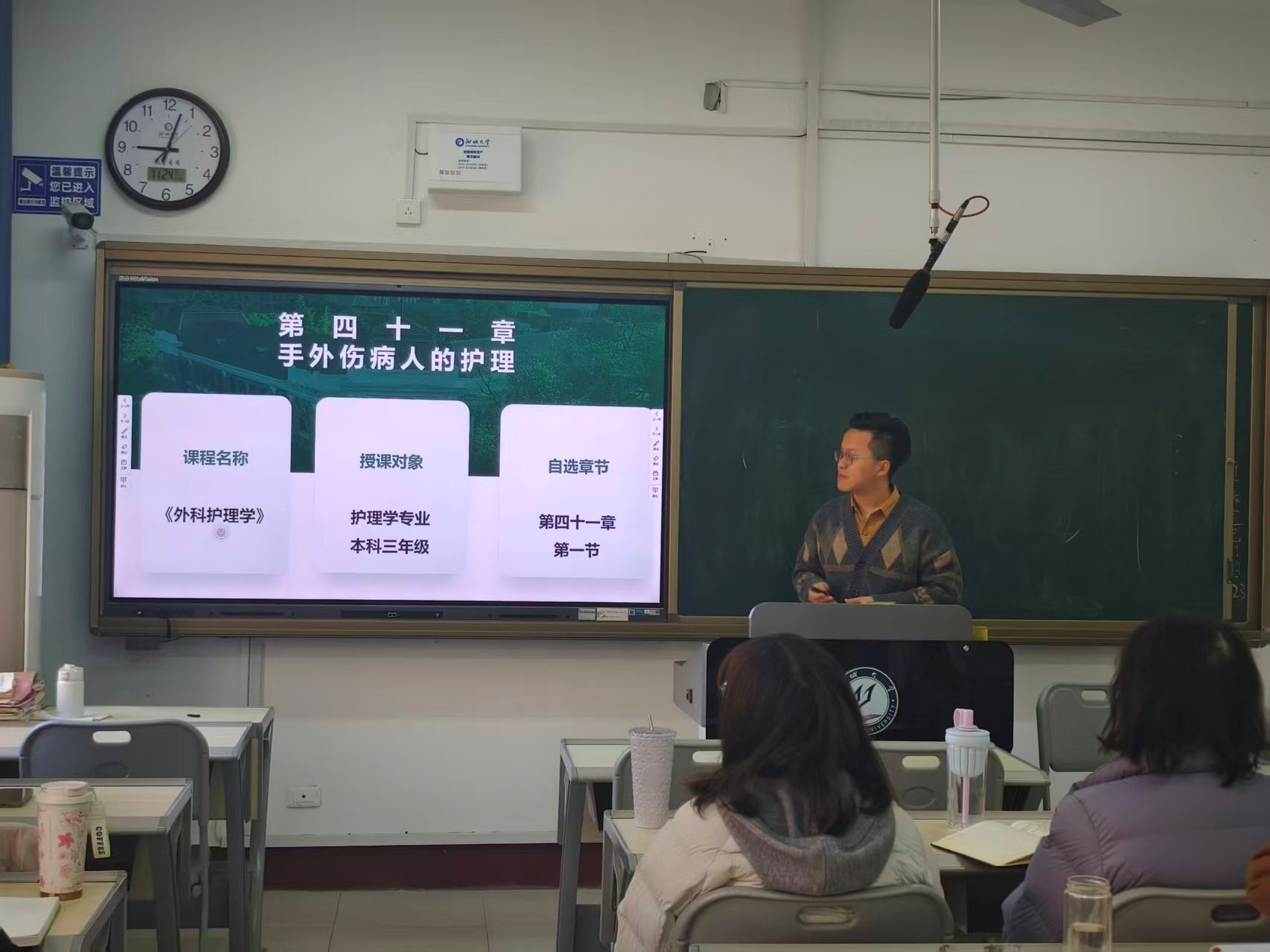 首先,王玉栋老师以《手外伤病人的护理》为题展开试讲。他围绕手外伤的护理评估、急救措施等核心内容,结合临床案例进行细致讲解,条理清晰地呈现了课程的知识框架与实践要点。试讲结束后,刘凤兰老师和于亚慧老师从多维度进行专业点评。例如,在PPT制作方面,建议优化色彩搭配与字体层级,增强视觉逻辑性;在案例导入环节,可进一步精炼文字表述、精选贴合教学重点的图片素材,提升代入感;课程内容上,应适当融入手外伤护理领域的前沿技术与研究成果,丰富教学内涵。同时,强调要突出护理操作规范、并发症预防等教学重点,合理划分各环节时长,确保教学节奏紧凑有序。