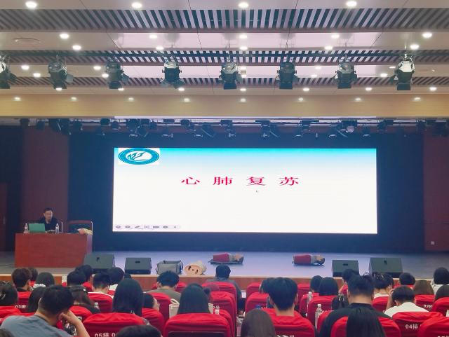 活动现场,校医院医生王健以PPT结合真实案例,讲解心肺复苏核心要点:通过拍打双肩、呼唤检查患者意识,观察胸廓起伏判断呼吸;按压位置定位于两乳头连线中点,频率保持在每分钟100-120次,深度不少于5厘米。随后,“医”心向阳服务队同学利用心肺复苏模拟人,规范演示开放气道、胸外按压、人工呼吸全流程。郭宁强调,操作中需持续观察患者反应,避免按压错位或用力过猛。