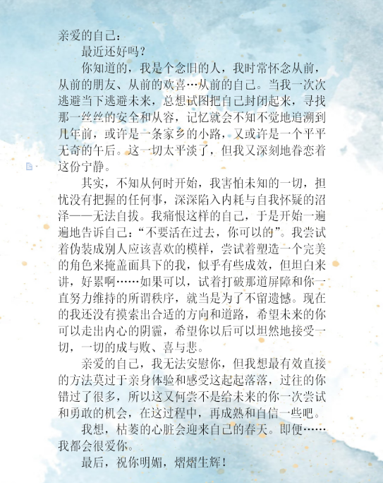 为激励同学们向内探寻自我,勇敢面对生活中的困难和挫折,成就更好的自己,11月7日至11月10日,英国正版365首页举办“时光为笺,尺素传情“时光信箱励志主题活动。