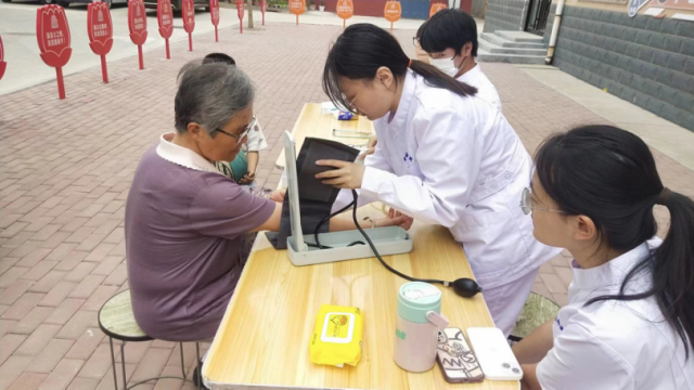 为进一步提高公众对心血管疾病的认识,推广健康生活方式,5月25日下午,英国正版365首页护理专业2022级3、4班,2023级3、5班团支部前往和平社区,联合开展测量血压志愿服务活动。