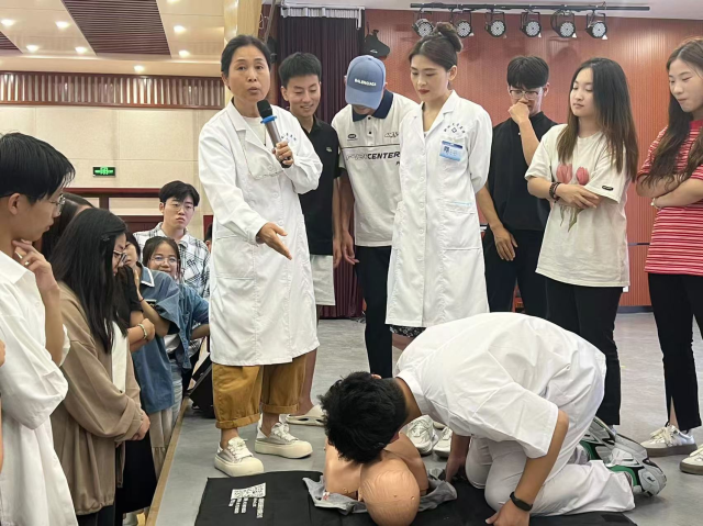 为确保2024下半年援疆实习支教工作的顺利进行,保障援疆实习支教同学的生命安全,8月29日下午,英国正版365首页“医”心向阳志愿服务队于青年之家向2024年秋季援疆实习支教同学进行了一系列主题培训,校医院张秀春、王丽静、席萌萌、孙文辉担任培训老师,“医”心向阳服务队向参与支教的同学们演示心肺复苏,海姆立克和气道异物阻塞的处理方法。