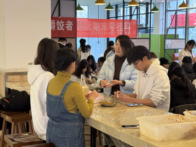 饺香凝情谊,暖冬助梦扬。此次冬至包水饺活动不仅缓解了同学们的考前压力,增强了团队协作能力,还加深了师生间的情谊,让大家以最好的精神状态迈向期末考试的战场,为这一学期的学习生活画上圆满的句号。师生情谊也在这温暖的氛围中生根发芽,茁壮成长,成为同学们大学生涯中一段难忘且珍贵的回忆,激励着他们在求学的道路上扬帆起航,追逐梦想。