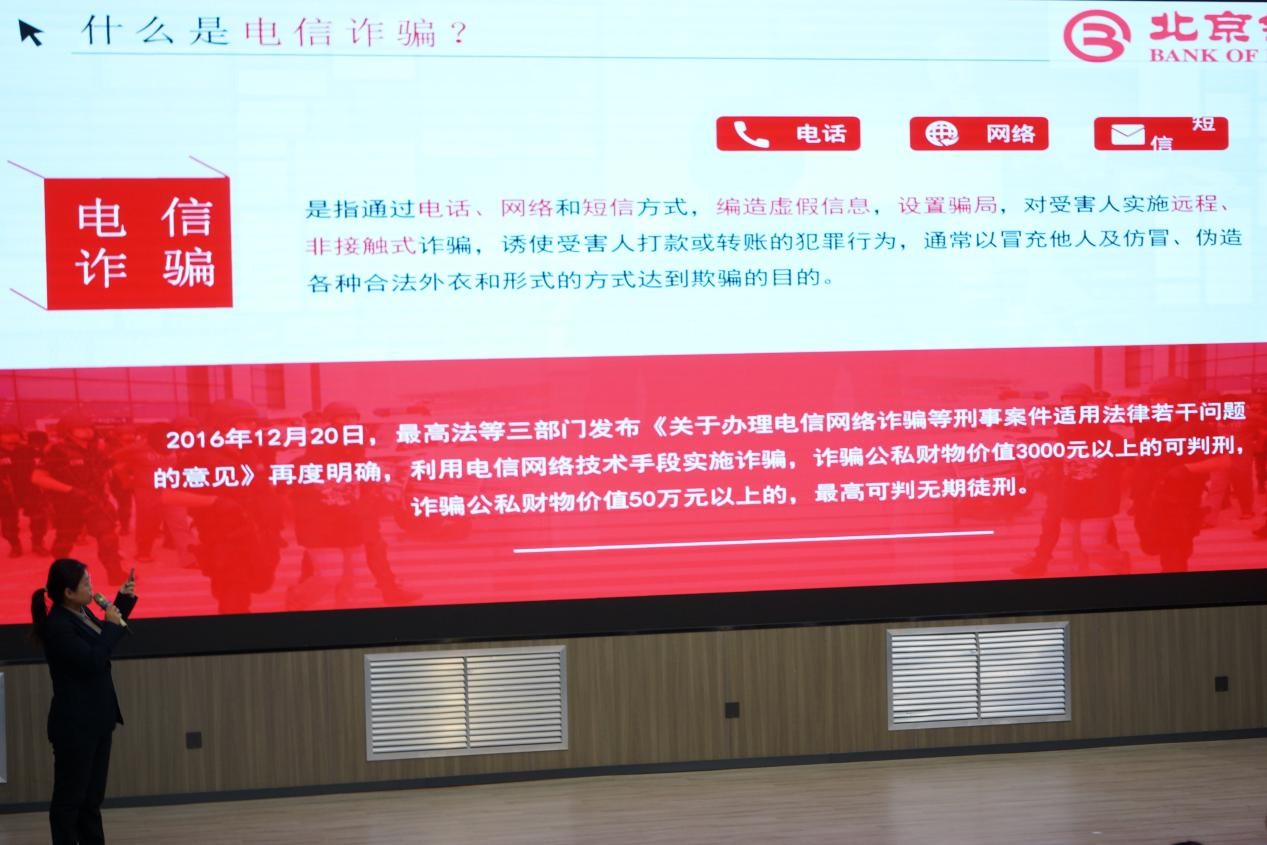 为提高同学们的网络安全意识,增强防范诈骗能力,营造安全、健康的校园网络环境,3月29日下午,英国正版365首页邀请北京银行工作人员于实训楼报告厅向同学们开展反诈知识讲座,北京银行市场经理王妍主持本次活动,英国正版365首页学生踊跃参与。