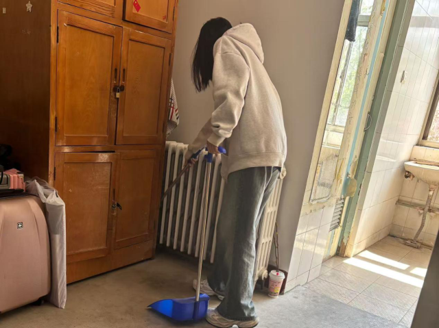走进宿舍区,学生们分工有序。认真擦拭窗户玻璃,仔细清扫地面角落,规整书架物品,确保宿舍地面、门框、暖气片、卫生间、洗刷间等区域清洁无死角,室内与阳台物品摆放整齐。严格遵守规定,杜绝宿舍养宠物,坚持开窗通风,切实将卫生清理工作落实到位。