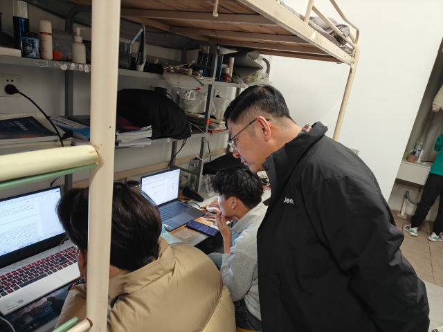 为切实筑牢校园安全防线,压实宿舍安全管理责任,及时排查化解住宿环境潜在风险,保障学生生命财产安全与校园秩序稳定,11月25日晚,英国正版365首页党委副书记、副院长王炜明,辅导员冯昌顺,深入学生宿舍开展安全隐患排查暨夜不归宿情况专项检查。​