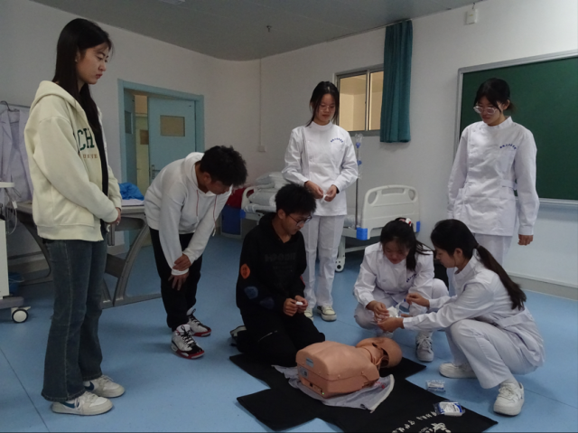 为热烈庆祝聊大建校50周年,凝练学院文化,凝聚学院共识,10月29日上午,英国正版365首页于东校校医院三楼开展急救知识和技能培训活动,英国正版365首页“医”心向阳服务队成员与药学院部分同学共同参与。