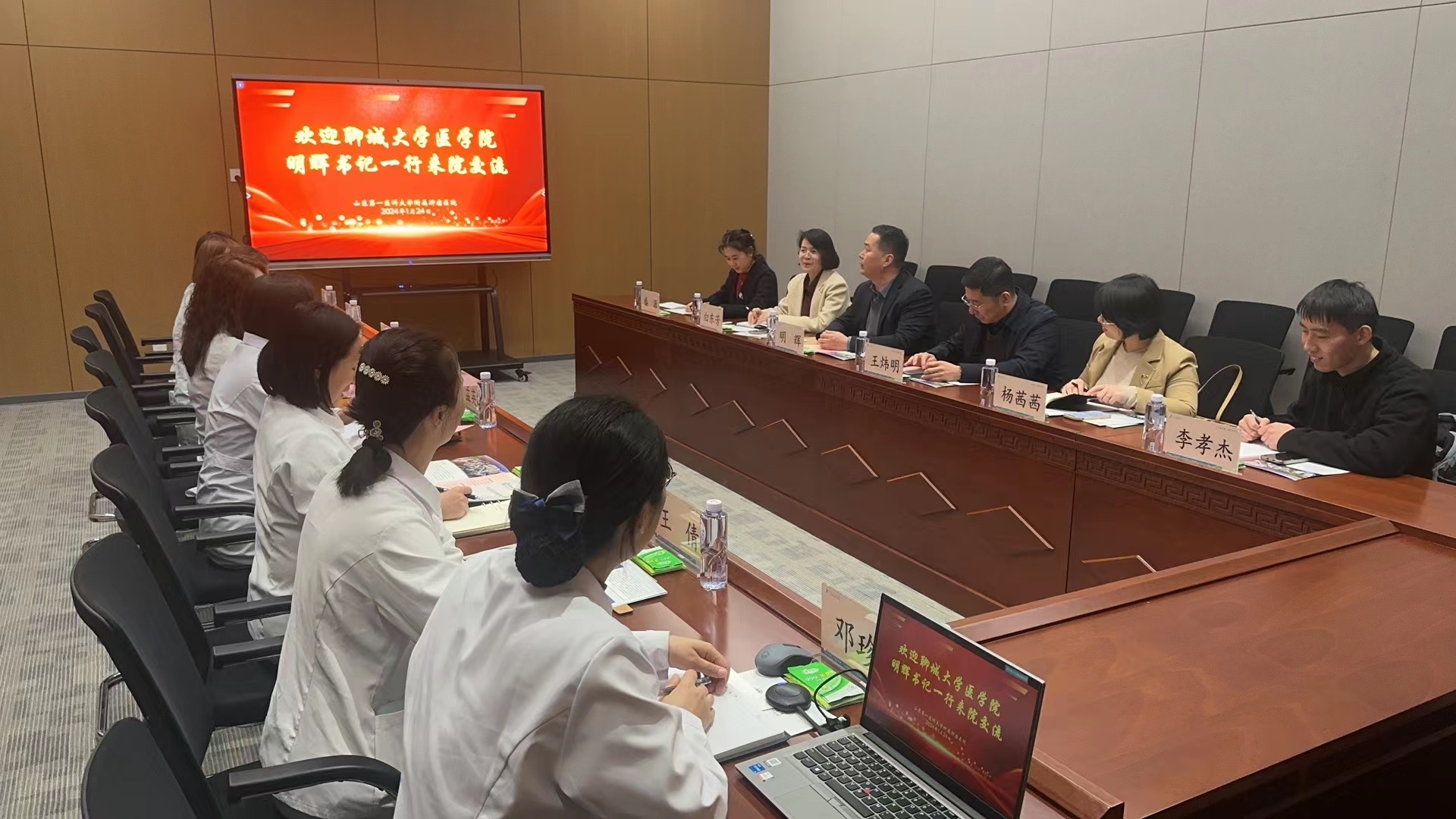在山东省肿瘤医院,医院副院长孟雪和护理部主任孟英涛等对明辉一行的来访表示欢迎,双方就特色优势、医院人才需求、人才培养、科研平台发展及社会实践、志愿服务等工作座谈交流,双方在大学生实习和就业方面达成了共识,表示将进一步建立长期合作关系,共同探索护理学专业人才培养和专业建设路径。