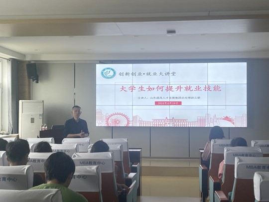 赵云新经理结合职场的动态变化以及学生的实际情况,从就业、考研、考公、留学等方向详细解读了同学们未来的发展方向,鼓励各位同学树立正确的择业观、就业观,科学做好选择;谈到生涯规划对于大学生的重要意义,赵经理呼吁在校学生摆正个人心态、锤炼自我情商、强壮身体素质,深刻认识自身的优缺点和单位的要求,以实际行动提高就业技能,实现个人价值与社会价值相统一。