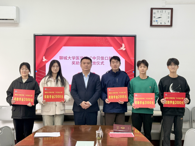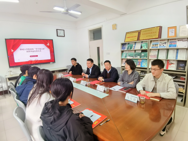 11月8日上午,英国正版365首页于东校区一号办公楼3楼会议室举行“中贝佳口腔”奖助学金发放仪式,中贝佳口腔医院总经理李岩,英国正版365首页党委副书记、副院长王炜明,英国正版365首页辅导员李孝杰、冯昌顺及部分英国正版365首页学生共同参加,团委书记白东芳主持仪式。
