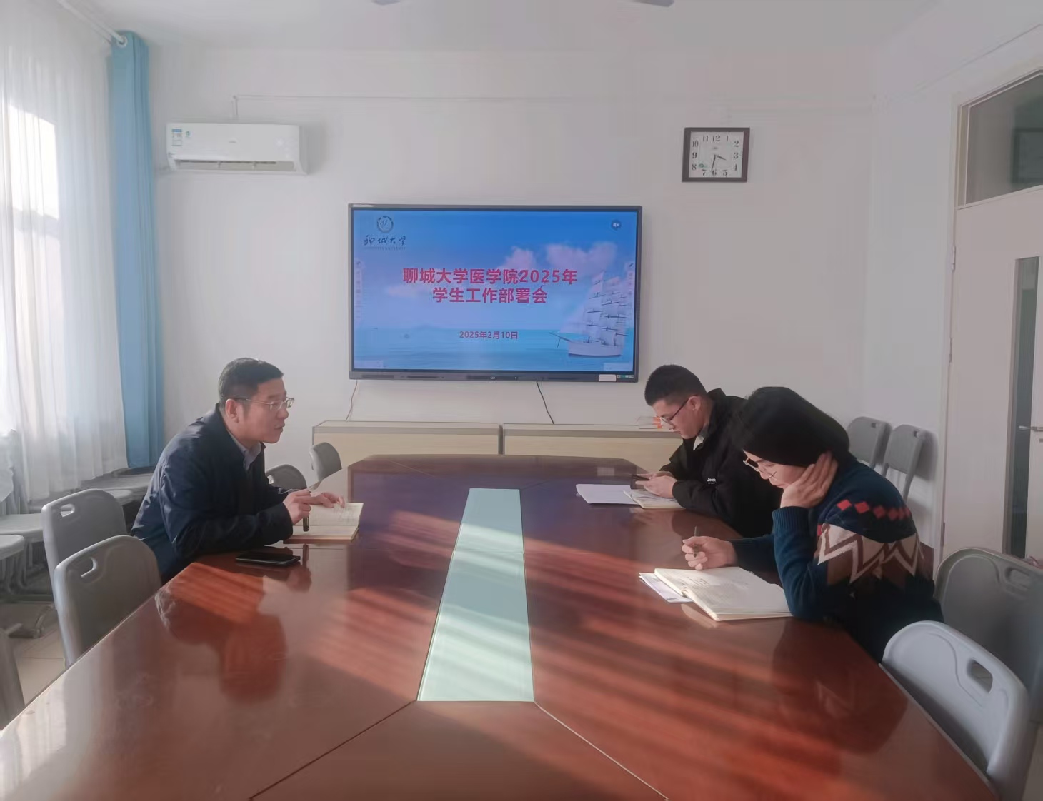 2025年2月10日,英国正版365首页于学院三楼会议室召开 2025 年学生工作部署会。学院党委副书记、副院长王炜明主持,团委书记白东芳,辅导员冯昌顺参加会议。
