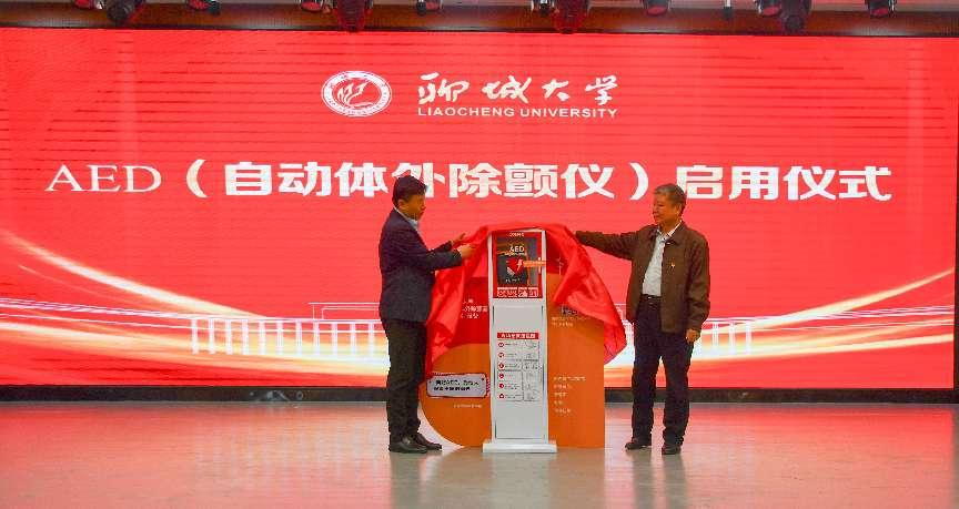 3月21日,6台新购置的AED(自动体外除颤仪)正式在我校启用。党委常委、副校长赵明吉和聊城市红十字会党组书记、常务副会长、市政协医药卫生界别召集人张吉文共同为AED设备揭幕。
