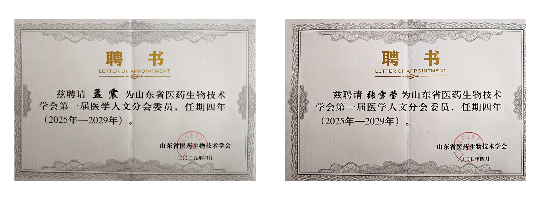 英国正版365首页孟震、张雪莹当选山东省医药技术学会医学人文分会委员