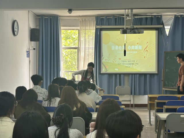 整个活动现场氛围温馨治愈、轻松融洽,老师以循序渐进的方式,带领同学们开启沉浸式心灵疗愈体验。活动以简单易学的节奏拍打游戏破冰启幕,老师引导同学们跟随轻快的背景音乐,通过拍手、拍腿、跺脚等方式共同打造节奏韵律,从起初的略显拘谨,到逐渐放开自我、默契配合,整齐且富有活力的节奏声响满整个教室,快速打破了同学们之间的陌生感与内心防备,让大家在轻松的互动中放下紧张情绪;随后进入旋律冥想舒缓环节,老师选取轻柔舒缓的纯音乐、自然白噪音等治愈系曲目,引导同学们调整坐姿、闭目放松,将注意力集中在呼吸与音乐旋律上,抛开学业烦恼、生活焦虑等负面情绪,跟随舒缓的音符慢慢放空大脑、舒展身心,在静谧的氛围里与自我内心对话,感受身心放松带来的平静与惬意;后续的音乐互动分享环节中,老师通过音乐情景联想等形式,鼓励同学们大胆表达内心感受,大家围坐在一起,在温柔的音乐铺垫下,主动分享自己的情绪困惑与成长感悟,彼此倾听、相互鼓励,没有评判与疏离,只有真诚的理解与陪伴,在进一步提升了自我心理调适能力同时,也增强了对集体的归属感与认同感。